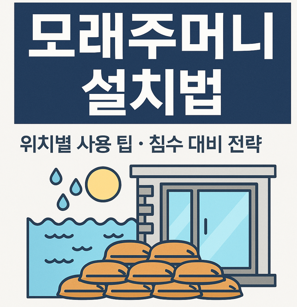 장마철, 국지성 호우, 태풍 등으로 인한 침수 피해는 예고 없이 닥칩니다. 이때 모래주머니는 가장 손쉽고 실용적인 수방 아이템으로, 침수를 막고 피해를 최소화하는 데 큰 역할을 합니다. 하지만 그냥 쌓는다고 모두 효과적인 것은 아닙니다. 이 글에서는 효과적인 설치법과 공간별 팁까지 상세히 안내합니다.