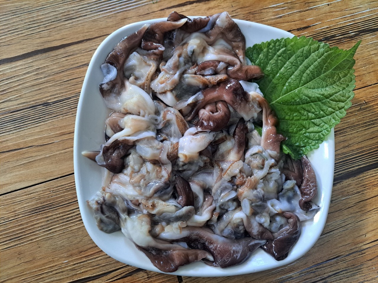 직접 손질한 새조개를 따끈한 육수에 살짝 데쳐 먹는 방식으로, 육즙과 향이 살아있는 상태에서 맛볼 수 있습니다.